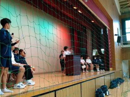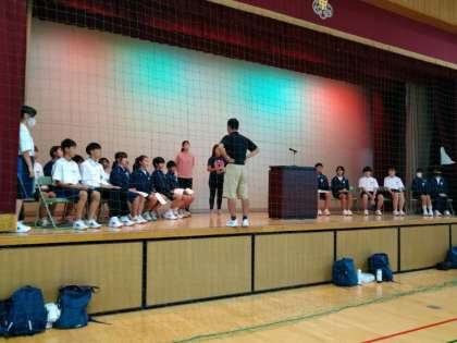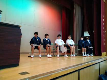 放課後、体育館では明日行われる立会演説会のリハーサルを行いました。