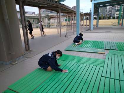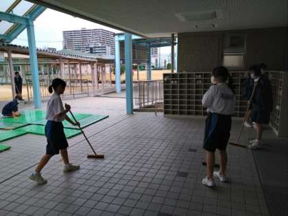 バレーボール部は、体育館前を綺麗に清掃をしてくれました。いい表情で、取り組んくれました。練習前のボランティア活動、ありがとうございます。