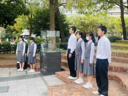 東遊園地(希望の灯り)にて震災セレモニーを行い、平和学習を行いました。