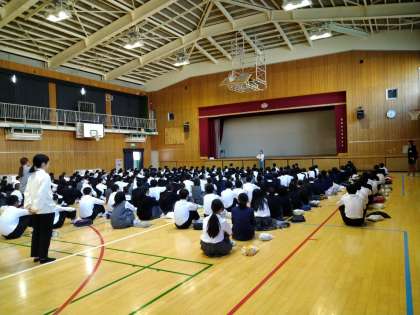 本日は、朝に定例の1年生の学年集会が行なわれました。自身の未来を切り拓くためにもしっかりと学習をしましょう。