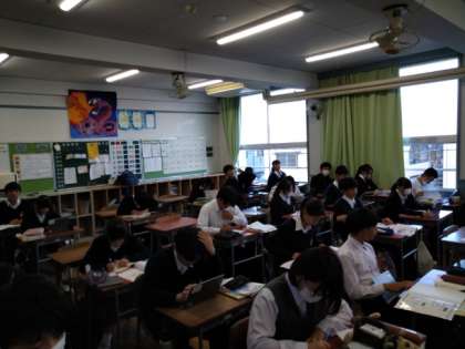 2年生は、自主学習と道徳のポートフォリオを行いました。道徳での学習の振り返りを行ないました。班で学習をしている学級もありました。期末に向けて、がんばってください!