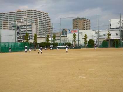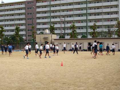 グラウンドでは、4つの部活動が場所を共有し活動をしています。がんばっています!