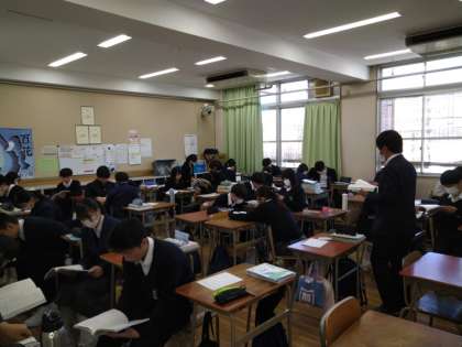 国語科の授業が本日、対象の教科でした。単元は、「故郷」。ペア読みをし、2人で本文の内容について意見を交わしました。工夫されたワークシートを基に、学びを深めています。