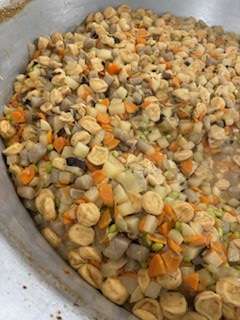 今日の給食は、卵どうふ、一口がんもと野菜の煮もの、キャベツとピーマンのそぼろいため、ごはん、牛乳でした。