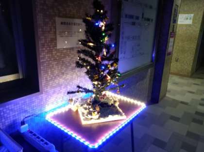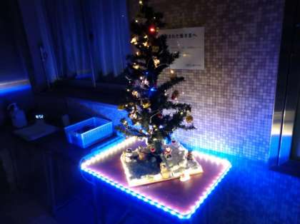正面玄関には、クリスマスツリーがございます。16時半くらいからライトアップされ、見ている人の心を癒してくれます。