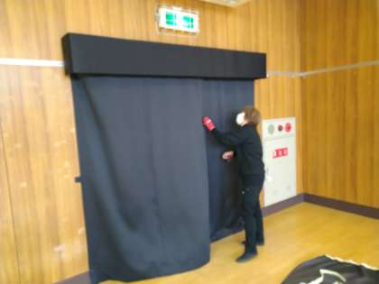本日、お昼より体育館のカーテンの取り換えを行っております。新しくなるカーテンを大切に使ってください。本日、体育館の練習をお休みにし、空けていただき、感謝しております。