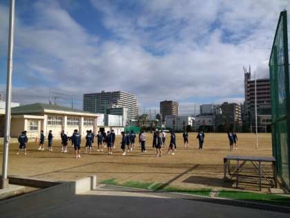 今日は、各学年2時間の授業が行われました。グラウンドでは保健体育の授業が行われていました。寒さに負けず、がんばっています!
