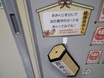 保健室前に「健康おみくじ」がございます。保健室の先生方に作っていただきました。ありがとうございます。あなたの今年の健康運勢を占ってみてください。いつも工夫に富んだ掲示物、ありがとうございます!