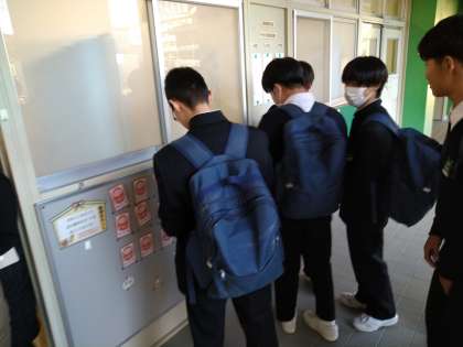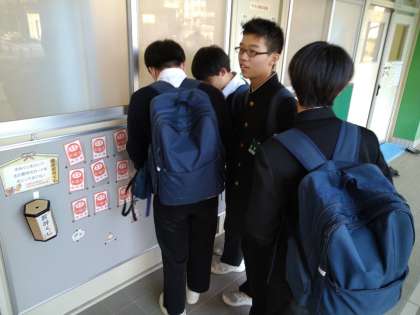 放課後、保健室前に3年生の生徒の皆さんが集まっていました。健康おみくじをしていまいた。おみくじの結果で良ければ自信に…、厳しい場合はこれから上昇すると期待を込め、自分を信じて歩んでください。