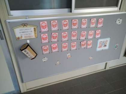 保健室前は、健康おみくじがございます。部活動終わりの下校前に、くじを引いていました。とても楽しそうな雰囲気でした。保健室の先生方、工夫凝らした作品、ありがとうございます。