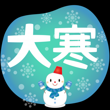 本日は、二十四節気のひとつ「大寒(だいかん)」です。今年は1月20日です。大寒は、一年の中で最も寒さが厳しい頃を意味しています。1月20日から立春の前日である2月2日の節分までが大寒の期間とされています。週末は、少し寒さも和らぎましたが、また、寒さが厳しくなります。寒暖の差が激しいですので、体調を崩さないようにしてください。