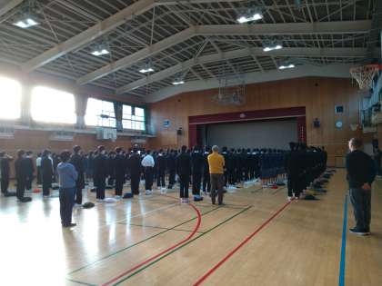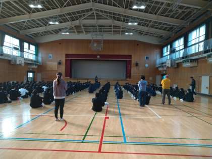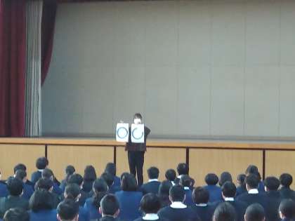 本日木曜日は、定例の2年生学年集会の日でした。昨日の1年生同様に、2年生も集合・整列が早く、スムーズにスタートができました。