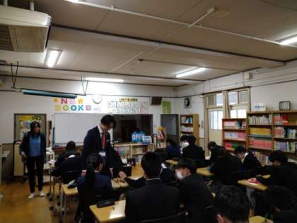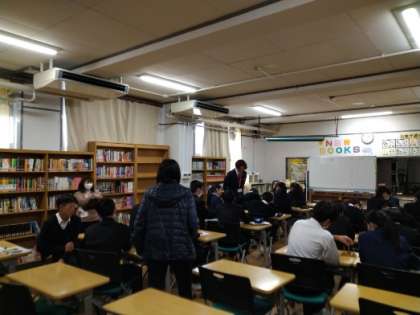 図書室では、難関大学現役合格!「大学進学入門講座」と題した授業が展開され、友だちと相談しながら、問題に取り組んでいました。集中していました。