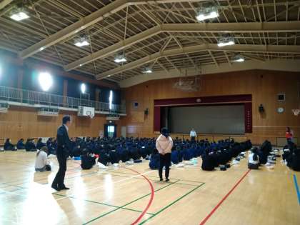 学年の代表の方からも、「入試にもつながる1年生の評価が決定する学年末テストに向けてしっかりと学習をしましょう」との話がありました。同時に、とても寒い日が続いています。体調を整えましょうとのメッセージもありました。とても丁寧にお話ししていただきました。