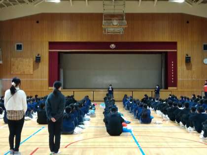 学年主任の先生からも、授業中に取り組む姿勢を良くしましょうとのお話しと、いい加減な姿勢での取り組みでは、いい加減なことしか残りません。いいもの、きちんとした姿勢で取り組み、積み重ねていきましょう。3学期のこの時期は、2年生に向けての準備期間です。この3学期も1か月が過ぎました。ここから意識を高め、学校生活を送りましょう。今週の金曜日は、車いす体験が実施されます。目的意識をしっかりと持ち、体験学習に臨んでくださいとの大切なお話がありました。