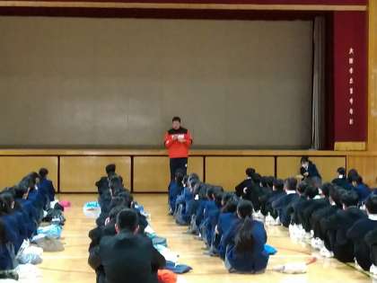 担当の先生からは、「2月10日は何の日か?わかりますか」との問いかけがございました。今年のこの日は、京阪神地区の私立高校入試日です。2年後には、入試を迎えます。今からその準備をしっかりとしていきましょう。そのためには、まず、日ごろの地道な学習が大切です。個人のがんばりの輪を広げ、学級の勉強するムードを高めてください。そのことで、学級の学力は高まります。一つの学級の頑張りが横の学級にも影響を与え、学年の学力が向上していきます。今からしっかりと努力を積み重ねましょう。