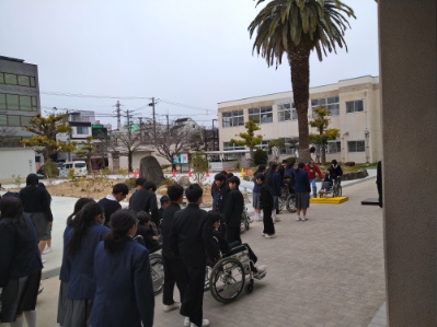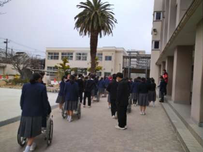5・6限目の後半クラスも、体育館で講話を聞き、6限目は実際に車いすを利用し体験学習を行いました。