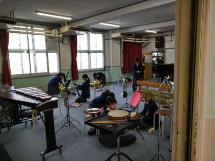 校内では、吹奏楽部の練習風景が見られました。いつもしっかりと練習に励んでいます。部活動指導員の方にもサポートしていただいております。ありがとうございます。