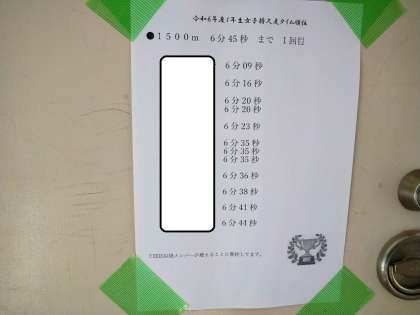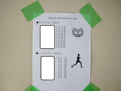 2年生男子の1500m走、1年生女子の1500m走とシャトルランの上位数名が紹介されました。名前の載った皆さん、おめでとうございます!