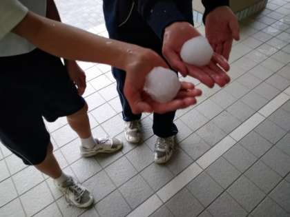 水泳部の子たちが、雪だんご?を見せてくれました。ありがとうございました。 上手に作ってくれました!
