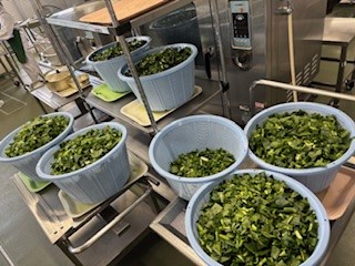 今日は「小松菜のごまあえ」が登場です。菫中学校だけで38.2Kgの小松菜が届きました。