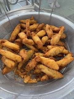 ☆給食室からこんにちは☆2月19日〜たらフライ、うすくず汁、小松菜のごまあえ、おさつチップス、ごはん、牛乳〜