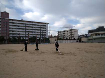 今朝は、体育委員のみなさんが朝早く登校し、グラウンドの整備をしてくれました。先生方も協力していただきました。ありがとうございます。