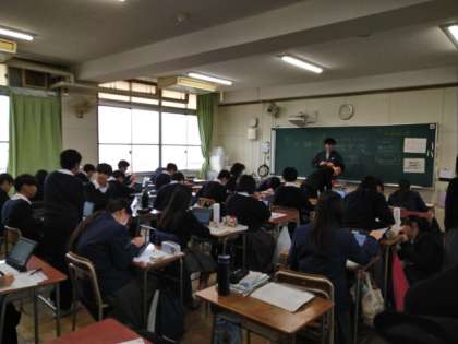3年生は、公立一般選抜試験に向けて、受検校までの経路を端末を使用し、調べました。その他、受検に向けての準備を行いました。また、これまでお世話になった机、いすのシールはがしなどを行い、卒業に向けての準備も行いました。