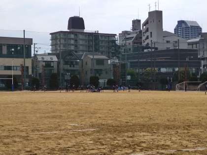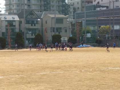 グラウンドでは、ラグビー部が練習試合を行っていました。秋の大阪市チャンピオンとして、いつも頑張って練習に励んでいます!