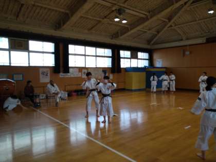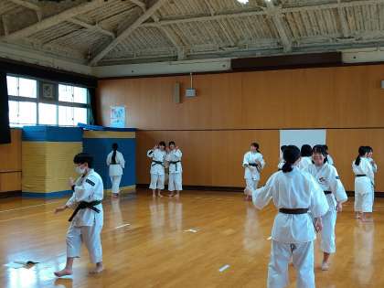 格技室では、少林寺拳法部が稽古に励んでいました。元気なあいさつが返ってきました。