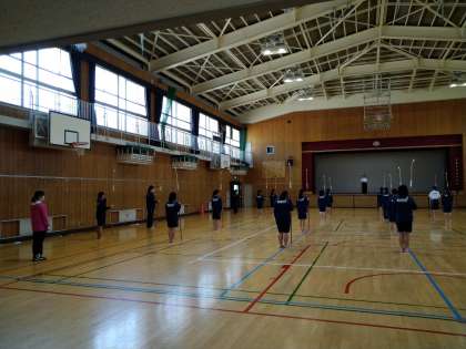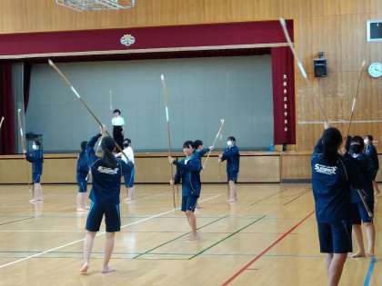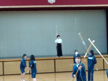 今日は、1年生の2クラスと2年生の4クラスのみなさんがなぎなたに挑戦しました。慣れない手つきながらも、非常に興味深く取り組んでくれていました!