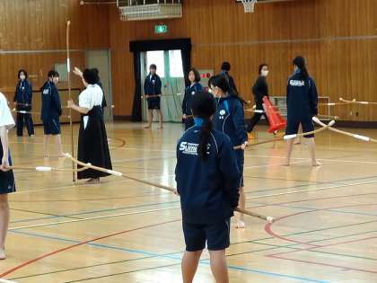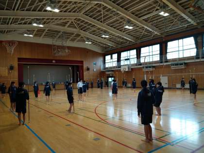 今日は4クラスの1・2年生のみなさんが武道・なぎなたに取り組みました。基本の所作を学びました。