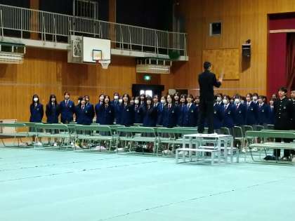 本日の午後より、3年生は卒業式練習を行います。限られた時間の中ですが、いい卒業証書授与式となるよう、意識を高く持ち、練習に取り組んでください。今日は、卒業式で歌う歌の練習を行いました。