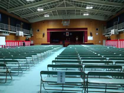 明日の舞台は整いました!後輩や教職員みなさんで、76期生の門出を祝う大舞台を整えました!明日、この菫中学校より華麗に羽ばたいてください!みなさんの勇姿を期待しております!