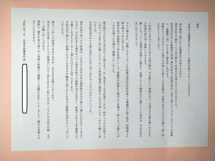 卒業生保護者代表さまより、謝辞をお預かりしております。ありがとうございました。