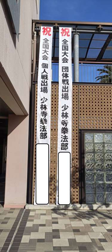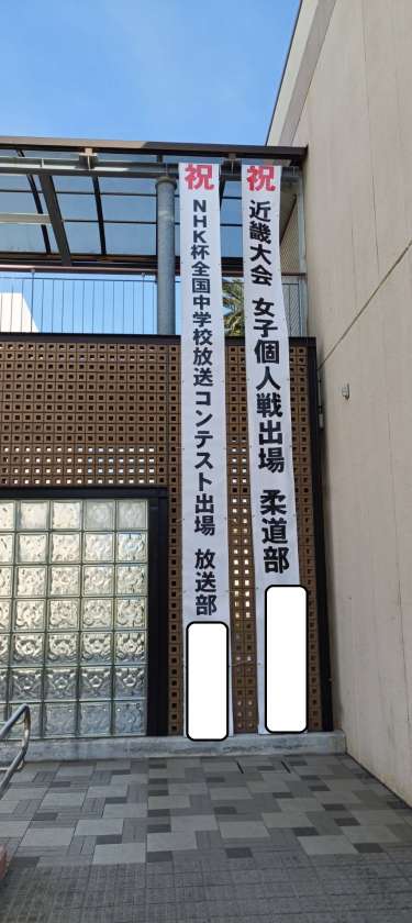 今年度の近畿・全国大会に出場した部活動を対象に懸垂幕を作成しました。今年度の対応が遅くなり、申し訳ございません。