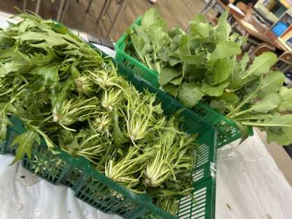 本日、菫中学校で野菜の収穫を行いました!これまで育ててきた水菜の収穫を行いました。みずみずしい野菜を育てました!よく頑張って育てましたね!