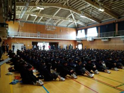 続いて、生徒指導主事より、春休みの過ごし方の諸注意、特に、SNSの使い方の注意喚起がありました。時間、場所等、正しく使うようにとのお話でした。4月8日に元気に登校をしてくださいとのお話もありました。