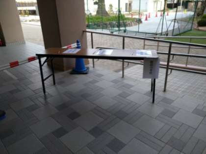 8:45 正門開錠し、受付開始です。自転車の方は、南門より入場し、自転車を停めて一旦、南門からご退出いただき、正門よりご入場ください。