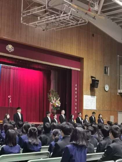 保護者のみなさま、本日は参列ありがとうございました。3年間、よろしくお願いいたします。今年の入学式は、久しぶりに来賓の方々にもご参列いただきました。来賓の皆様、ありがとうございました。