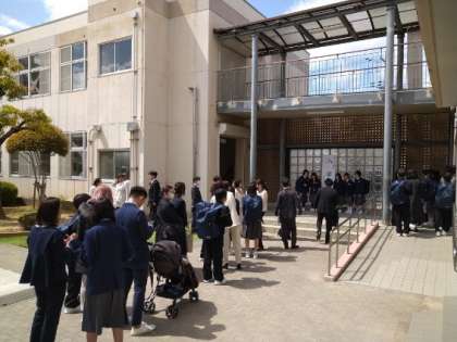 1年生の教員紹介が行い、吹奏楽部の演奏をバックに新入生が退場しました。とても素晴らしい入学式でした。79期生のみなさんのこれからの成長を期待しています!学級活動後は、中庭で記念撮影会が行われました!!