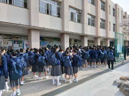 本日より、令和7年度がスタートしました。8時過ぎに2・3年生のクラス発表が行われました。緊張の面持ちでクラス掲示を確認していました。