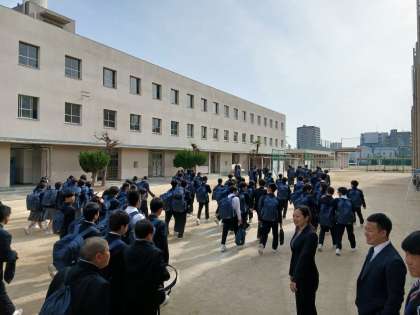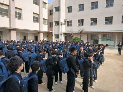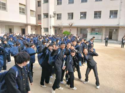 発表前の様子です。生徒の皆さんも先生も元気です!発表の合図とともに一目散にクラス掲示に走りだしました!
