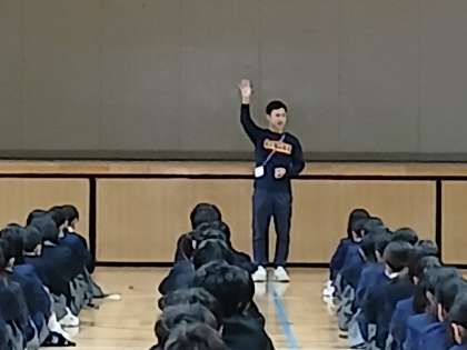 先生からは、今年は受験を控えている1年、しっかりと学習をしましょうとのお話がありました。そのためには、まずは日々の授業を大切にしましょう。学習だけでなく、部活動はじめ様々なことに対して、しっかりと向き合う1年にし、みなさんの成長を期待していますとのお話しでした。この1年間の過ごし方、向き合い方を丁寧にお話ししていただきました。