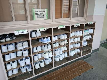 1年生の5限目の授業の様子です。校歌の学習をしています。いい雰囲気で授業が展開されています。靴もきれいに揃えて靴箱に入れてくれています。ありがとうございます。
