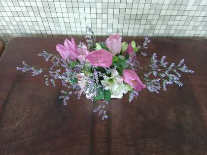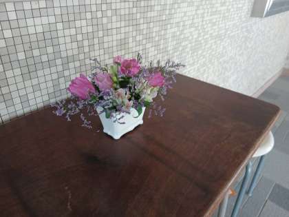 今日は、地域ボランティアの方に来校していただき、お花を活けていただきました。とてもきれいなお花です。正面玄関で、みなさんをお迎えしてくれています。