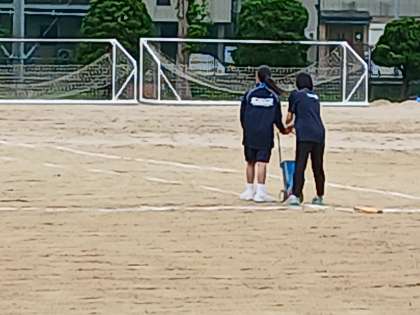 朝のグラウンドでは、体育委員の人がラインを引いてくれていました。先生のご指導もあり、とても上手に引けていました。ありがとうございます!