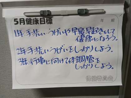 本日、保健委員会が行われ、今月の目標が決まりました。お伝えいたします。