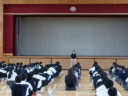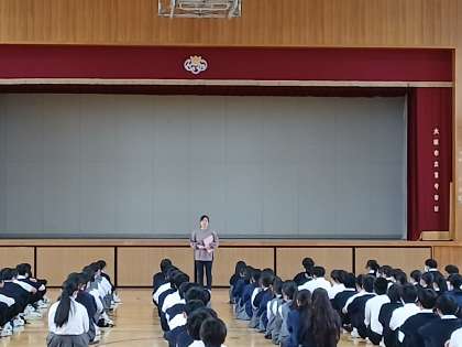 先生からは、「これからの進路に向けてのお話でした。ご自身の経験を基に今後のみなさんの道しるべとなるような貴重なお話でした。しっかりと自身の実力と向き合い、進路選択をしましょう。」とのお話でした。