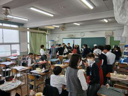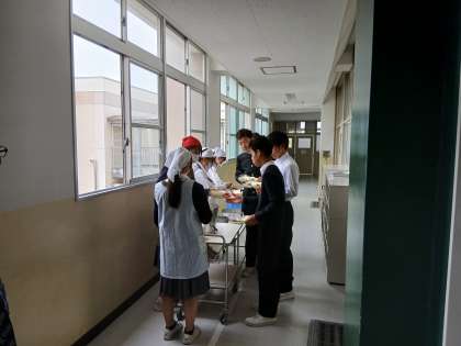給食の配膳も係の人を中心にスムーズにできています。3年生は残食なしです!よく食べてくれています。2年生、給食時も元気です!1年生も上手に配膳できるようになりました!